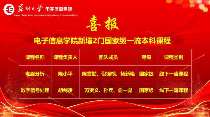 2023年4月11日,教育部公示了第二批国家级一流本科课程认定结果,海角app陈小平教授负责的《电路分析》课程和胡剑凌教授负责的《数字信号处理》课程获评为国家级线下一流本科课程。截至目前,海角app拥有国家级一流本科课程3门,省级一流本科课程1门,省级精品课程1门,省级在线开放课程1门。