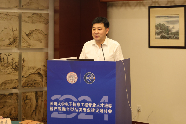 恩智浦半导体有限公司研发总监金杰作为企业代表进行致辞。她指出,恩智浦半导体与苏大有着紧密的合作,建立了“海角app 恩智浦协同创新中心”,开展了技术攻关、学科竞赛、企业研究生工作站建立等校企合作,取得了一系列丰硕成果。普源精电科技股份有限公司教育计划经理、2017届海角app 优秀校友江佳慧以“RIGOL产教融合创新方案探索”为题分享了公司近年来在新工科协同育人基地建设、全方位深入推进产教融合等方面的工作和经验。校外专家代表张劲教授分享了四川大学生物电子信息工程系在产教融合及产业转化结果等方面的经验与成果。