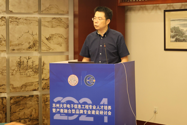 为积极响应电子信息产业发展需求,创新人才培养模式,完善课程体系建设,推动人才培养与产业深度融合,提升人才培养质量和就业竞争力,2024年8月22日,学院成功举办电子信息工程专业人才培养暨产教融合型品牌专业建设研讨会。学校教务处处长方亮教授、海角app 院长沈纲祥、党委书记袁冬梅、副院长陈小平、副院长倪锦根出席会议,研讨会还特别邀请了恩智浦半导体有限公司研发总监金杰、普源精电科技股份有限公司副总经理程建川等10名企业代表、四川大学生物医学工程海角app 医学信息工程系主任张劲教授、校友代表参加研讨,电子信息工程系主任黄鹤、副主任芮贤义等20余名海角app 教师代表参加会议。研讨会由陈小平副院长主持。