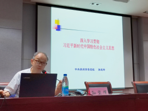 孙坚烽以“深入学习贯彻习近平新时代中国特色社会主义思想”为主题,带领大家回顾从党的十八大以来,以习近平同志为核心的党中央,从理论和实践结合上总结提炼形成了习近平新时代中国特色社会主义思想;其理论体系不断丰富和发展,概括出“十四个坚持”“十个明确”“十三个方面”“六个必须坚持”“两个结合”的深刻内涵。孙坚烽结合丰富的事例和详实的数据,生动地阐述了深入学习贯彻习近平新时代中国特色社会主义思想的形成、重要内涵和实践意义。