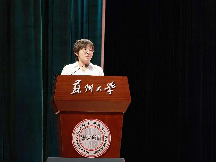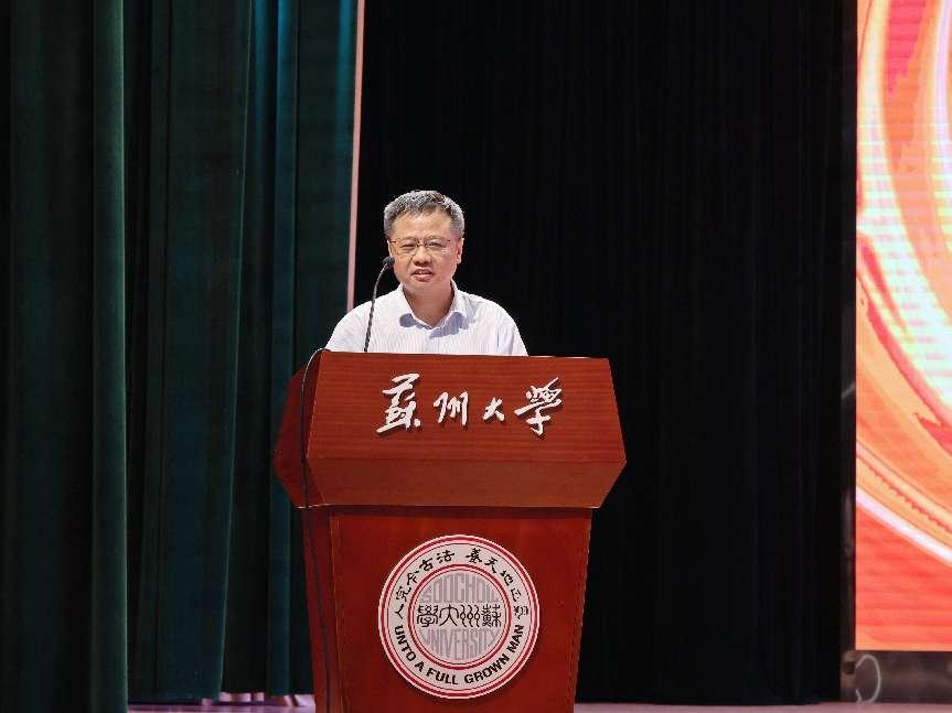 典礼最后,党委书记袁冬梅老师对新加入的468名新同学表示祝贺和欢迎,鼓励大家在青春的赛道上奋力奔跑。她表示,大家选择苏大、选择电院,是投资了新赛道,坐上了和谐号。在新中国成立七十五周年之际,袁书记希望同学们立青春之志,践青春之行,展青春之姿,创造属于自己的未来,为中华民族伟大复兴贡献青春力量。
