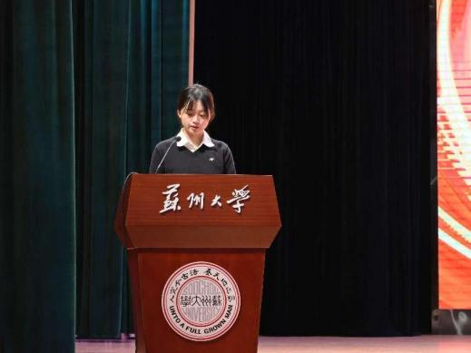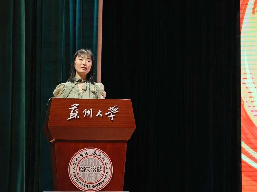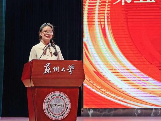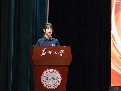 在本次开学典礼上,海角app2015届毕业生王丹丹女士作为校友代表向2024级新同学表示祝贺。她满怀眷恋地回顾了自己在苏大电院求学的青葱时光,讲述了自己在苏大再到国外深造求学的历程,以及从迷茫到笃定、从曲折到成功的创业历程,鼓励大家不畏困难、迎接挑战。