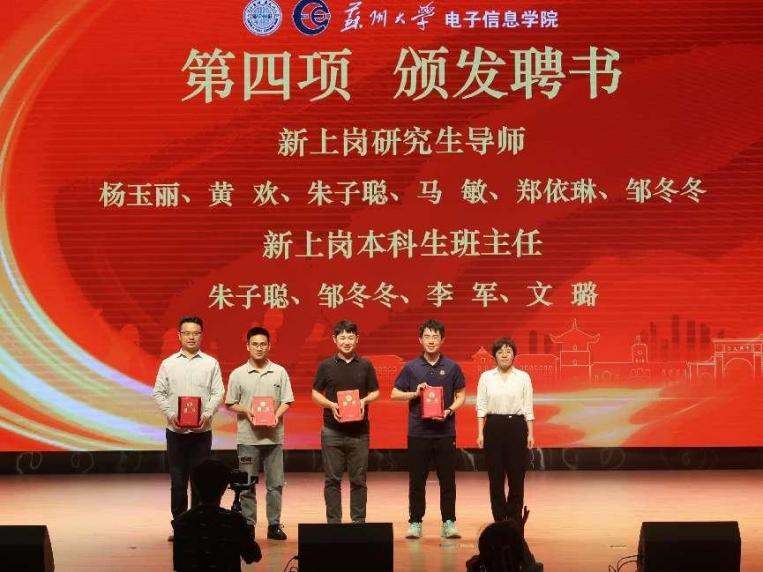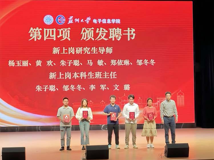 随着24级同学们的到来,新一批研究生导师、本科生班主任也将光荣上岗。为贯彻落实习近平总书记在全国教育大会上的重要讲话精神,弘扬尊师重教风尚,在开学典礼中,院长沈纲祥教授、党委书记袁冬梅老师分别为新上岗研究生导师、本科生班主任颁发聘书,向躬耕在教学科研一线的全院教师致敬。