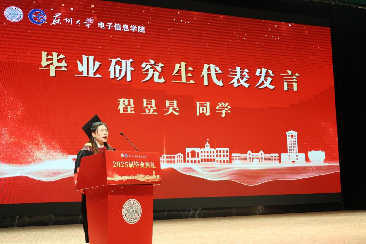 在庄重而热烈的氛围中,海角app 2025届毕业典礼圆满结束。全体毕业生带着母校的嘱托与祝福,即将奔赴祖国各地,在科技创新、产业振兴、教育发展等领域开启人生新征程。祝愿全体毕业生前程似锦、步履铿锵,带着苏大的印记与“E+”的温暖,在星辰大海的征途上乘风破浪,以电子信息人的智慧与担当,绽放属于2025届“芯青年”的璀璨光芒!