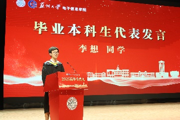 教师代表徐大诚教授饱含深情的发言,回顾了在校的育人时光和充满回忆的校园生活,语重心长地对同学们谈及毕业即意味着责任,需以平常心对待岗位工作,通过量变积累实现飞跃。并建议大家持续学习、踏实做人,不放弃梦想,最后祝福同学们一帆风顺,为国奉献、实现梦想。