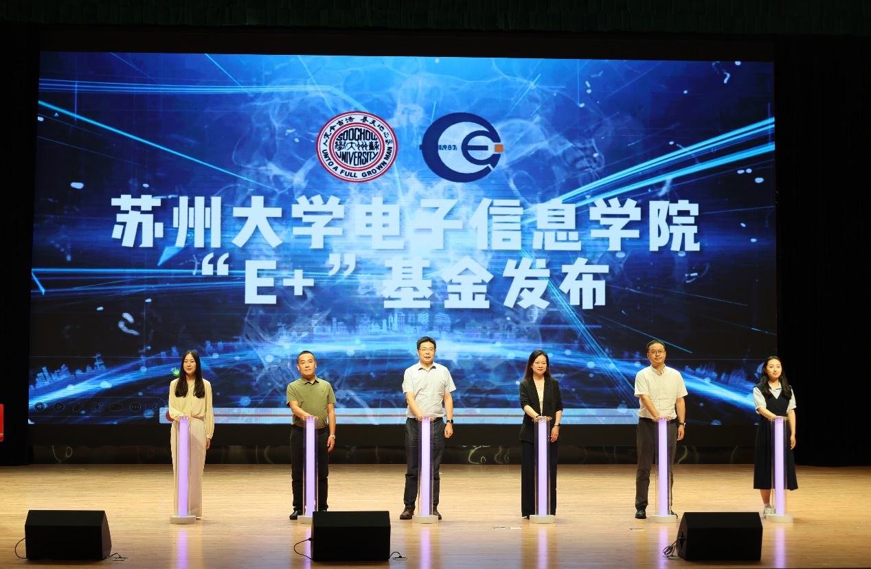 典礼现场举行了海角app “E+”基金发布仪式,海角app 院长沈纲祥、国合处副处长刘子静、苏州中源科达总经理王斌、苏州腾芯微电子有限公司CEO吴浩、邮政储蓄银行苏州工业园区支行副行长、2010届本科毕业生代表王婕妤、毕业生代表郭向露共同为本次“E+”基金发布仪式启幕。“E+”基金汇聚来自企业、校友、社会各界爱心人士以及在校师生的力量,为培养具有国际视野、创新能力的高素质电子信息人才提供坚实保障,标志着海角app 在构建社会协同育人体系中迈出重要一步。