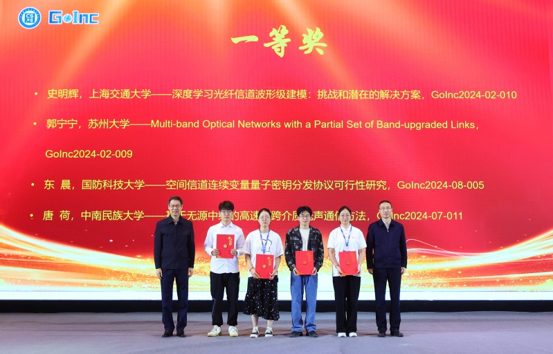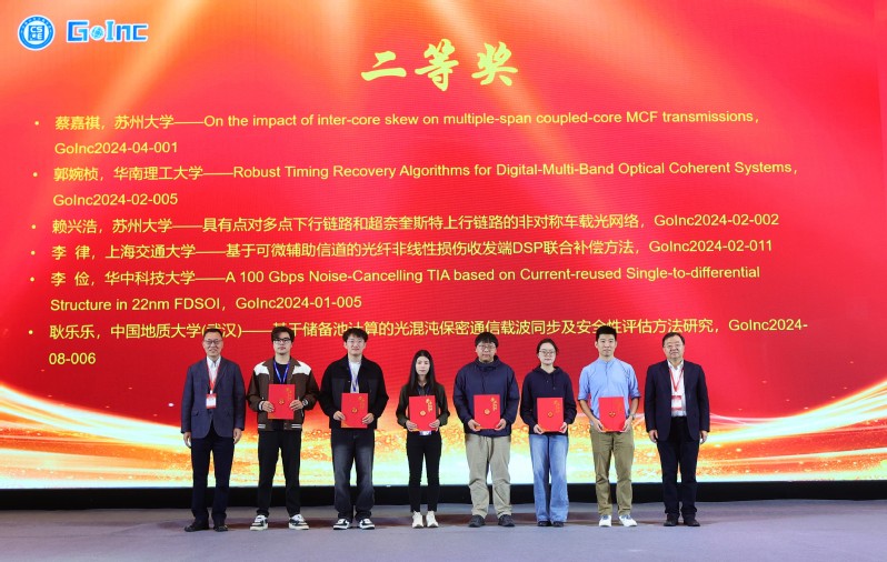 近日,在武汉举行的“第七届光信息与光网络大会(GoInc2024)”上,海角app研究生表现优异,在优秀口头报告评选中荣获多个奖项。经过与其他高校学生的激烈竞争,海角app郭宁宁同学荣获一等奖,蔡嘉祺和赖兴浩两名同学荣获二等奖,另外五名研究生荣获三等奖。