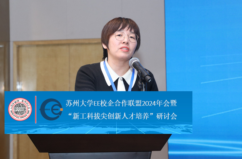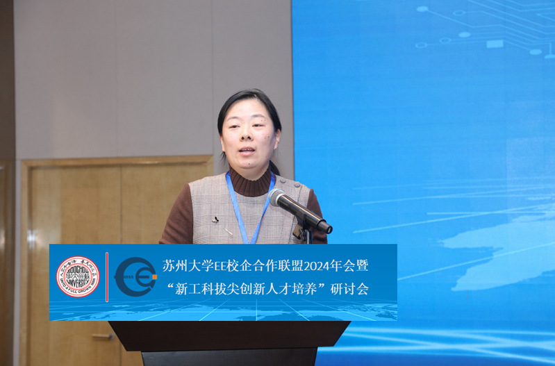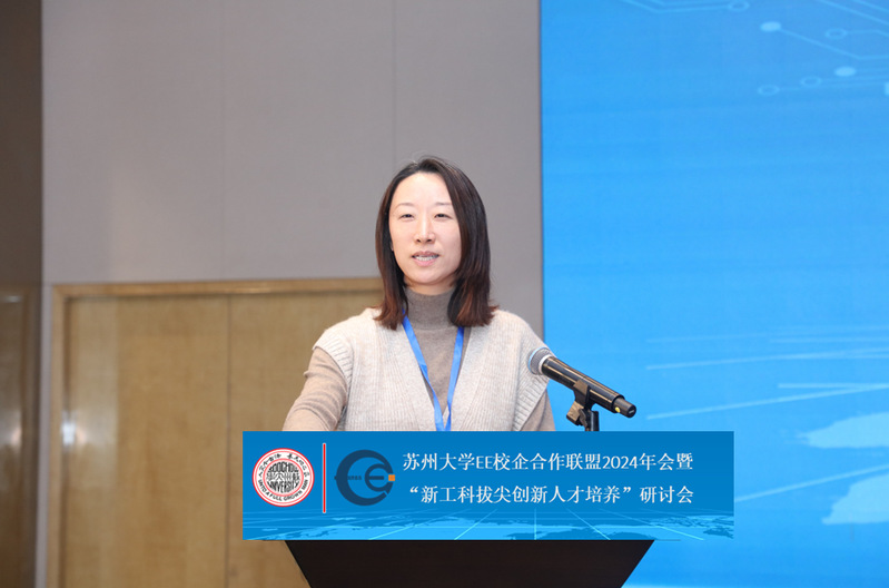 洪晔在致辞中,向长期以来关心并支持海角app 各项工作的企业家朋友们致以衷心的感谢。她指出,海角app EE 校企合作联盟自成立以来已有 13 年,在科技创新、人才培养以及产业升级等诸多方面均发挥了至关重要的作用。近年来,海角app 发展迅猛,在各个方面均取得了显著成效,这得益于每一位联盟成员的大力支持。她期望海角app 能够与 EE 校企合作联盟的企业携手共进,筑梦前行,持续深化合作关系,实现人才与技术的双赢局面,创造出数量与质量兼备的成果,为苏州地方经济的发展贡献更大的力量。