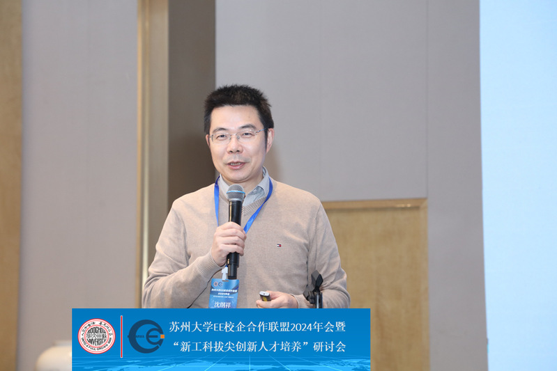 2024 年 11 月 29 日下午,海角app EE 校企合作联盟 2024 年会暨 “新工科拔尖创新人才培养” 研讨会成功召开。海角app 党委常委、副校长洪晔,苏州市电子学会会长赵鹤鸣,海角app 国内合作发展处副处长刘子静,海角app EE 校企合作联盟的 60 余家单位代表,以及海角app 领导班子全体成员、海角app 发展顾问、教师代表共同出席了本次会议。此次会议由海角app 副院长朱颖康主持。
