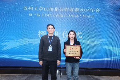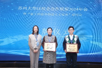 会议期间,海角app EE 校企合作联盟为新加盟的会员单位举行了授牌仪式。江苏省质量和标准化研究院物联网标准化研究所所长侯月丽,思必驰科技股份有限公司技术总监石韡斯,以及苏州新东方市场部主管侯晓阳作为会员单位代表分别作了主题发言。