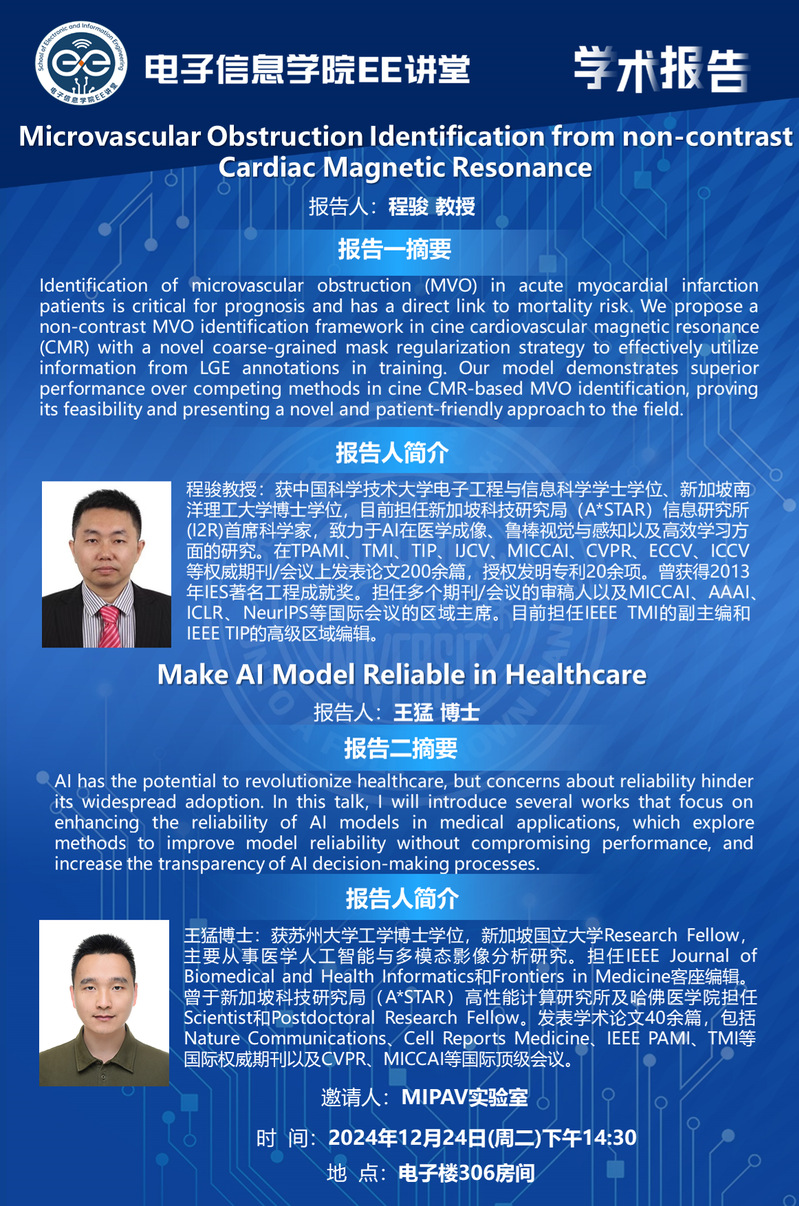 【学术报告】1、Microvascular Obstruction Identification from non-contrast Cardiac Magnetic Resonance;2、Make AI Model Reliable in Healthcare