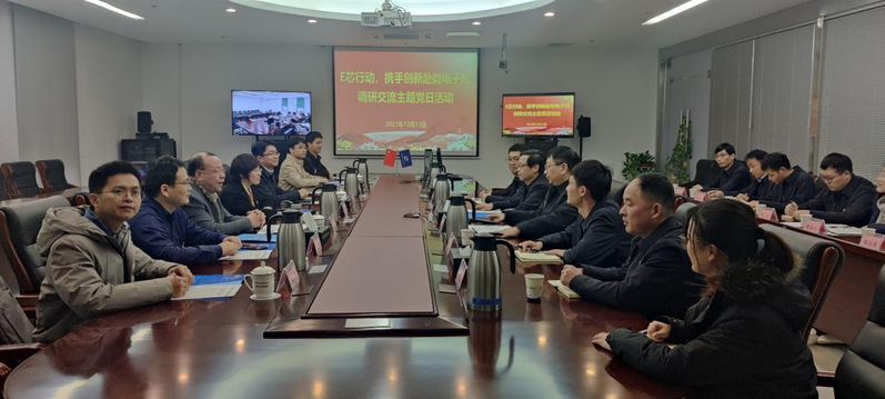 北方微电子研究院蚌埠园区高级主管王世和、纪委副书记兼党委工作部部长程晋阳等领导以及研究院半导体及MEMS工艺部副主任赵建强、传感器事业部总经理周宇飞等专家出席了交流会,支部成员张允晶、李灵锋和张文海博士就各自的研究方向与研究院技术骨干进行了技术交流。苏州研发中心的相关专家参加了线上交流。