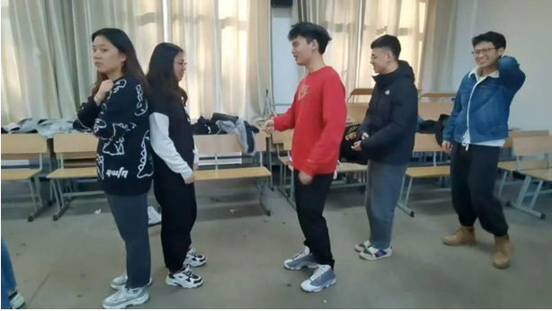“解手结”游戏环节,所有人手拉手先围成一个圈,随后随着音乐的播放开始随意走动,音乐停止后,大家需站在原地和最初左右两侧的同学再次牵手,并齐心合力解开手结。