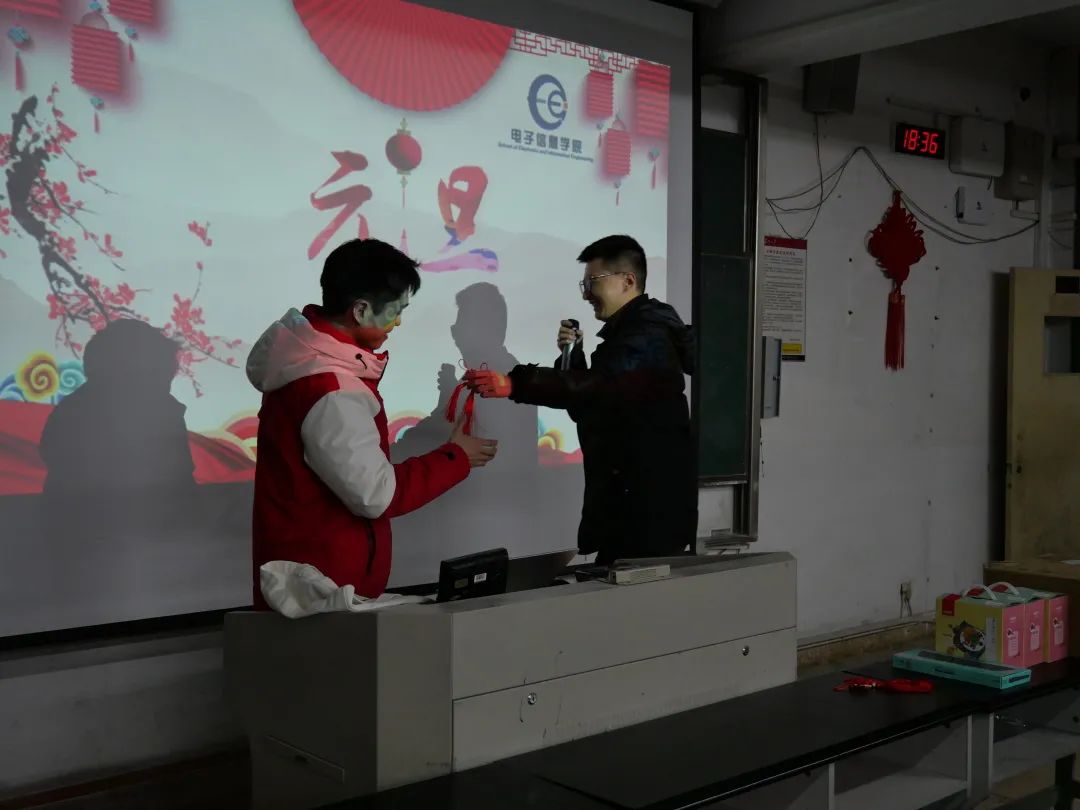 为了增加喜庆的气氛,增强活动的趣味性,本次活动设置了激动人心的抽奖环节。每位参与活动的同学都可以参与抽奖,但不能重复获奖。整个抽奖分三次进行,第一次是七点钟,抽取三名三等奖;第二次是七点半,抽取两名二等奖;第三次是八点钟,抽取一名一等奖。