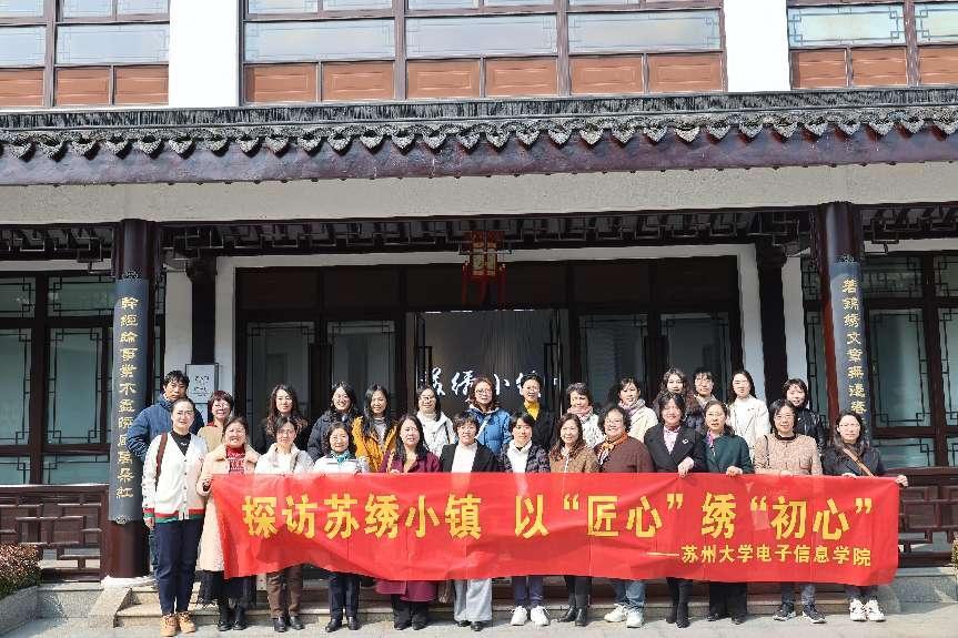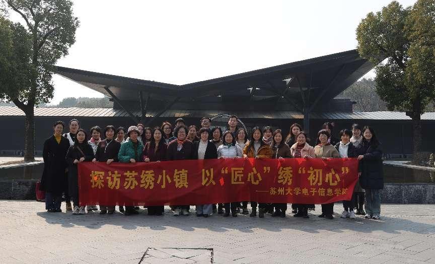 阳春三月,花香四溢。3月8日,在第114个国际“三八”妇女节来临之际,海角app 开展探访苏绣小镇,以“匠心”绣“初心”为主题的系列活动。海角app 党委书记袁冬梅、党委副书记副院长黄远丰、工会主席曹洪龙和在职、退休女教工参加了本次活动。