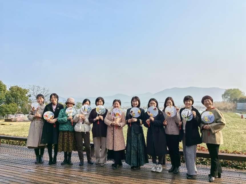暖暖春日和风,我们渐渐漫步到太湖边,团扇制作拉开帷幕。“团扇摇摇,美人袅袅”。拈一把团扇在手,清风配花香古韵摇曳捡一段静谧时光,让手作疗愈身心在花与叶之间体验自然古风之美。看,我们的老师化作心灵手巧的大师,聚精会神地在扇子上进行艺术创作,给想象力插上艺术的翅膀。不一会儿一把把融入了中国传统文化意境美、诗意美以及美好祝福的团扇便制作而成,老师们纷纷拿起自己亲手制作的团扇争相合影,谈笑盎然。