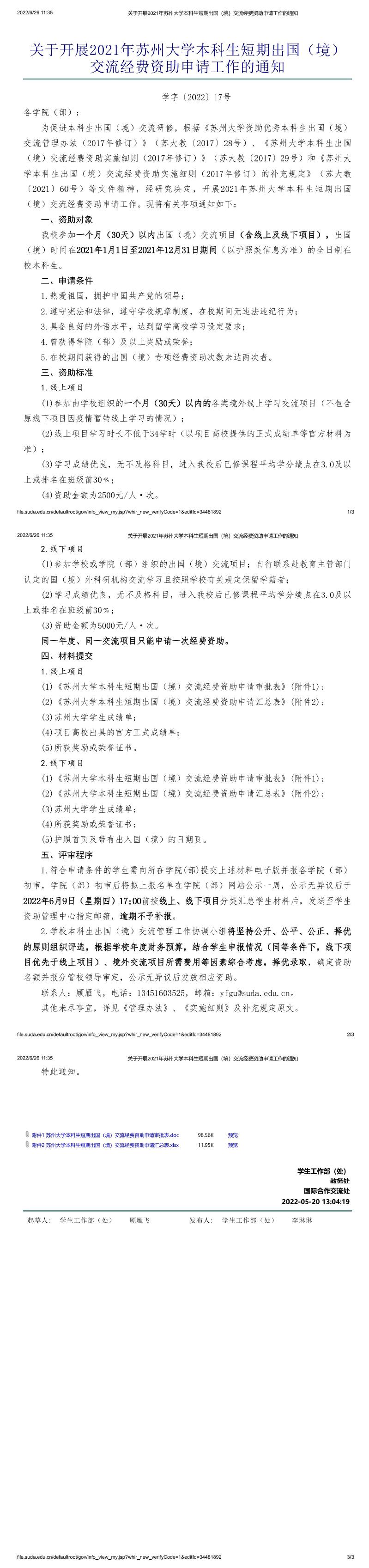 关于开展2021年海角app 本科生短期出国(境)交流经费资助申请工作的通知