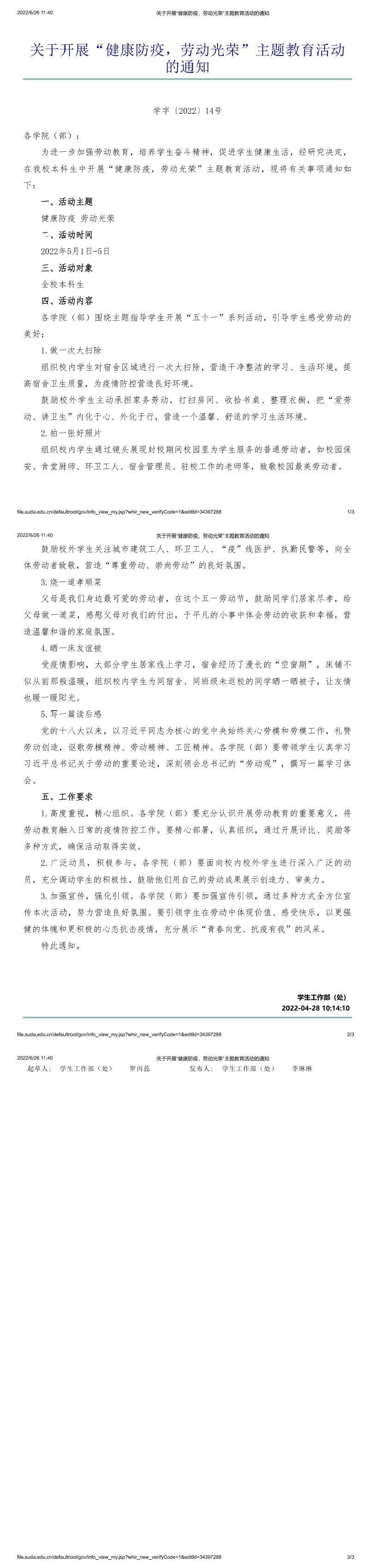 关于开展“健康防疫,劳动光荣”主题教育活动 的通知