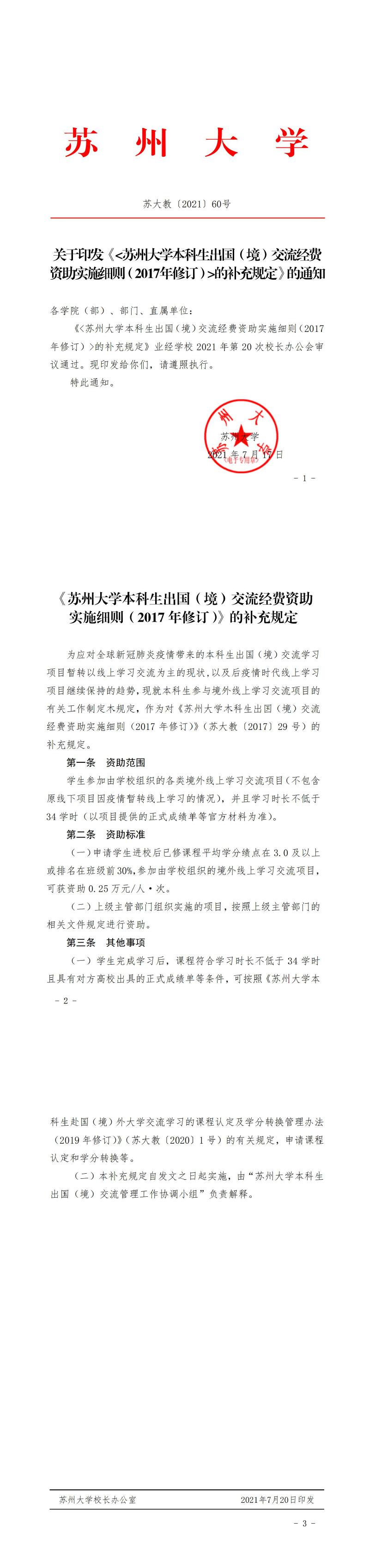 《海角app 本科生出国(境)交流经费资助实施细则(2017年修订)》的补充规定》