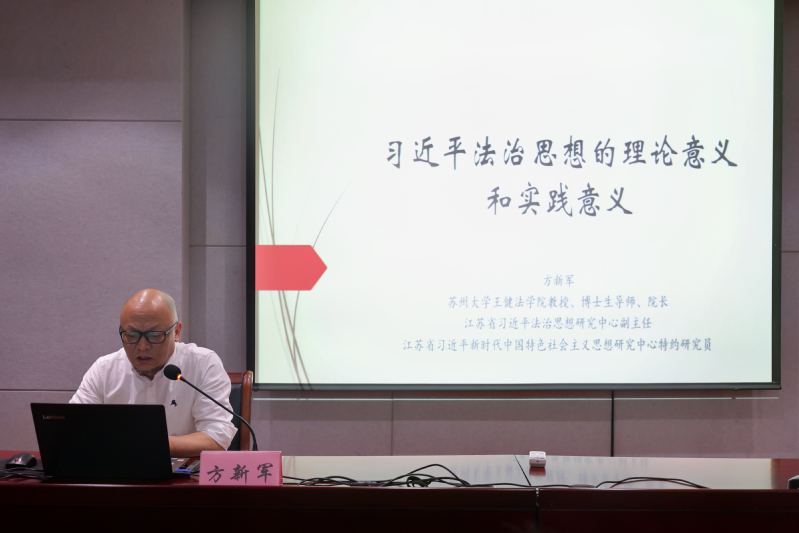 为深入学习宣传贯彻习近平法治思想,推进党纪学习教育走深走实,5月29日下午,海角app 党委举办法治专题讲座,海角app 纪委委员、法海角app 院长方新军应邀讲授。海角app 全体教职工、分党校师生学员以及党建联盟单位苏州联通姑苏区分公司党支部党员参加了辅导讲座。海角app 党委书记袁冬梅主持报告会。