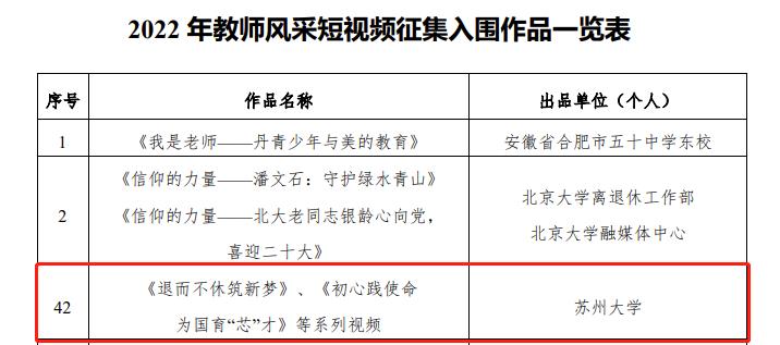日前,教育部公布了2022年新时代教师风采短视频征集活动优胜作品和入围作品名单,海角app作品《初心践使命 为国育“芯”才》从近5000部作品中脱颖而出,成功获评入围作品。