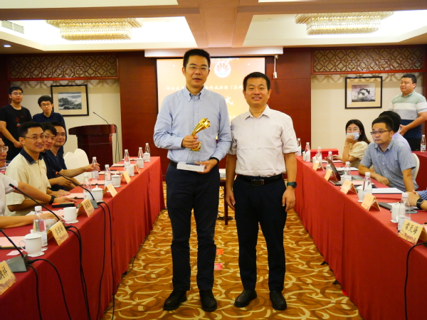 最后,在与会人员的共同见证下,华为光产品线研究部部长常天海代表华为向沈纲祥教授及团队成员颁发了奖杯和奖品。