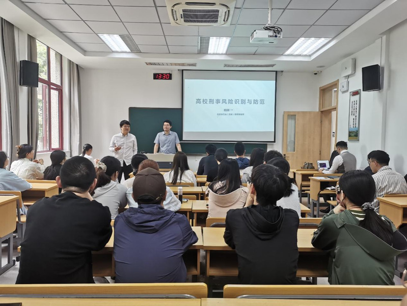 校友王凯律师首先回顾了从学校走上法律工作岗位的历程,分享了作为一名党员在学习成长过程中的坚韧,然后就自身的业务领域“高校刑事风险防范”进行了相关案例的剖析,从刑事诉讼的角度出发,对我国的刑罚种类及刑事诉讼流程进行了介绍,以高校常见的刑事犯罪案件为例,分析了高校相关的刑事案件类型和发生的原因,同时向师生们介绍如何识别案件风险并作出相应的防范措施。