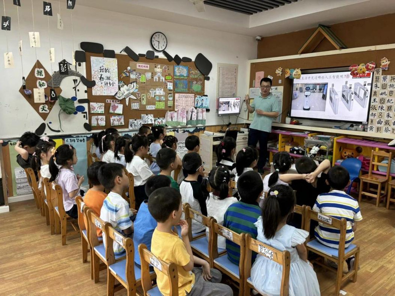 “它是自动的”,“摄像头是它的眼睛”,“它不能吃饭但是需要充电”……苏大幼儿园的小朋友们围绕人工智能话题,兴奋地打开了话匣子。