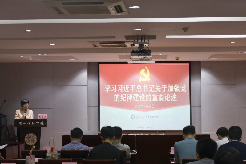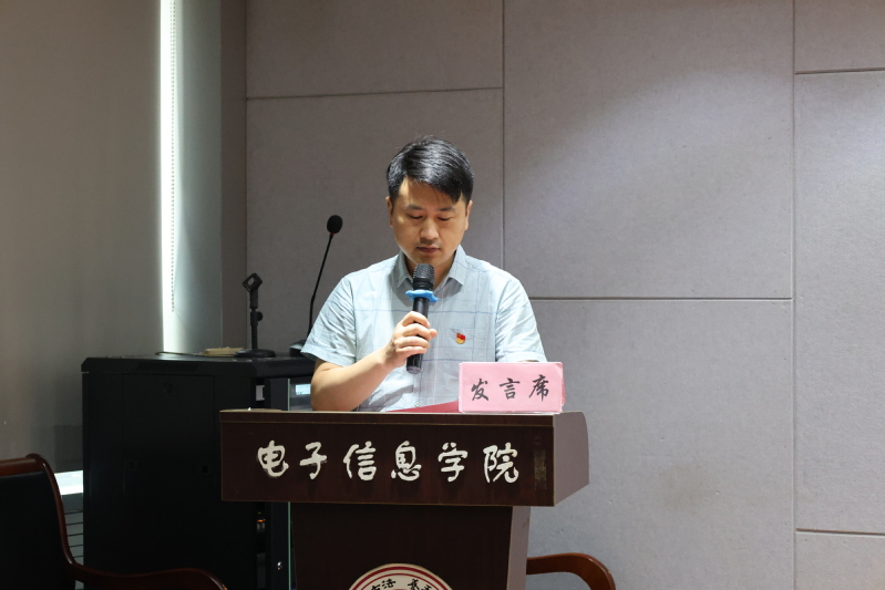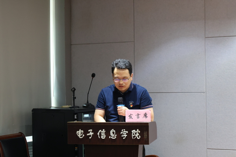 电子信息工程系党支部书记胡南结合违反工作纪律和生活纪律案例,呼吁广大党员要时刻保持自重、自省、自励,树立良好的生活作风和工作作风,以身作则、严以修身、严于律己。