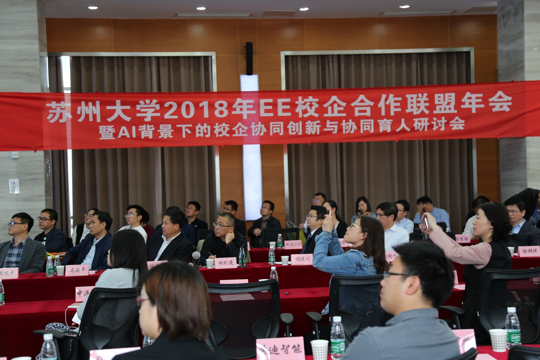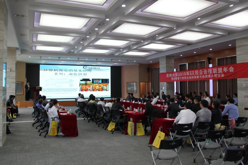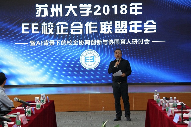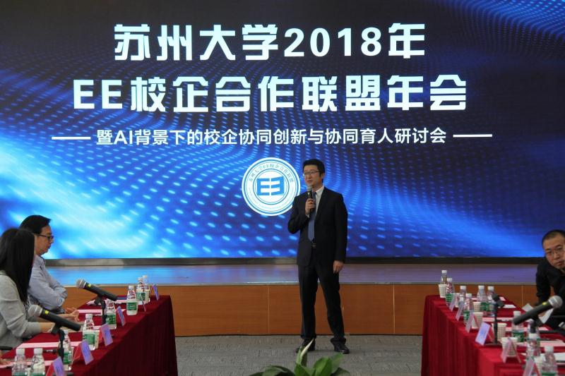4月20日下午,“海角app EE校企合作联盟2018年会暨AI背景下的校企协同创新与协同育人研讨会”在苏州普源精电科技有限公司举行。苏州市电子学会理事长赵鹤鸣、海角app 党委书记徐群祥、院长胡剑凌等海角app 班子成员、特邀专家海角app 机电工程海角app 院长孙立宁教授以及苏州普源精电科技有限公司、苏州江南嘉捷电梯有限公司、金龙联合汽车工业(苏州)有限公司等四十余家联盟单位的60余名代表、海角app 部分师生出席了此次研讨会。会议由海角app 院长胡剑凌教授主持。