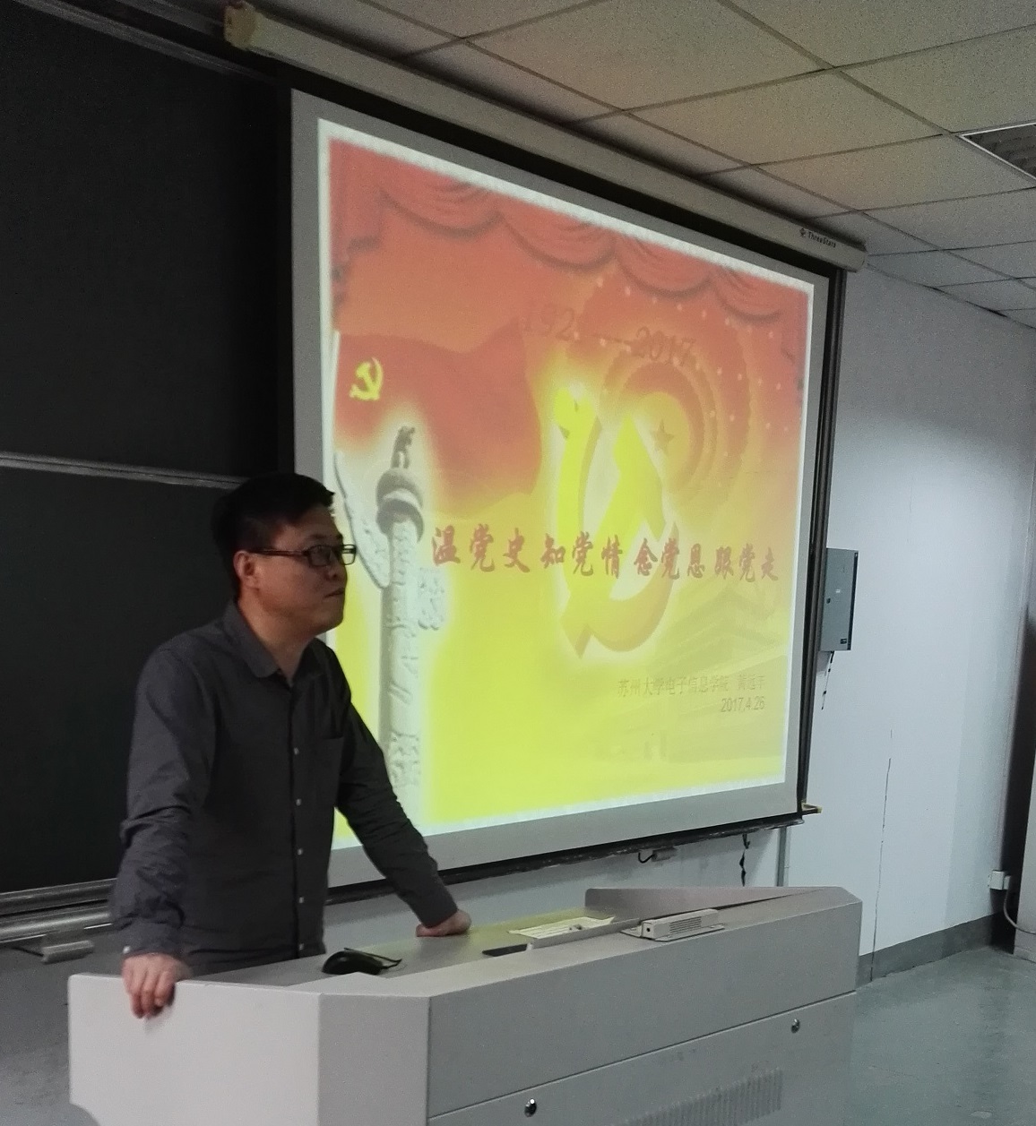 首先,黄书记从今天发生的热点事件引入,也就是国产第一艘航空母舰下海,他表示这是一件令人热血沸腾的大事。随后他谈到了近几年来党的反腐斗争一直持续不断,高压态势一直存在,习近平主席的从严治党理念永远都在坚持着。随后,黄书记就进入了今天的主题:讲党史。黄书记从近代中国的发展时期来讲述中国共产党的发展与成长,分别讲述了我党在旧民主革命时期,新民主主义革命时期,以及新中国的社会主义革命时期的作为和贡献。其中,黄书记着重讲了在这几个时期中所孕育而出的精神,比如说长征精神,这是红军在两万五千里的行军过程中克服各种困难形成的精神,它虽然已经过去多年,但是仍然具有时代价值。