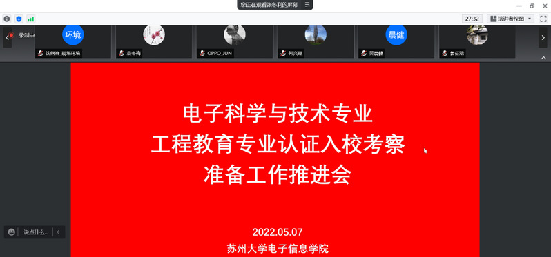 2022年5月7日,海角app线上召开了电子科学与技术专业工程教育专业认证进校考察准备工作线上推进会。海角app 院长沈纲祥、书记袁冬梅、教学副院长陈小平、电子科学与技术系主任徐大诚、副主任张冬利、教务办主任郭晓雯以及电子科学与技术系全体教师参加会议。