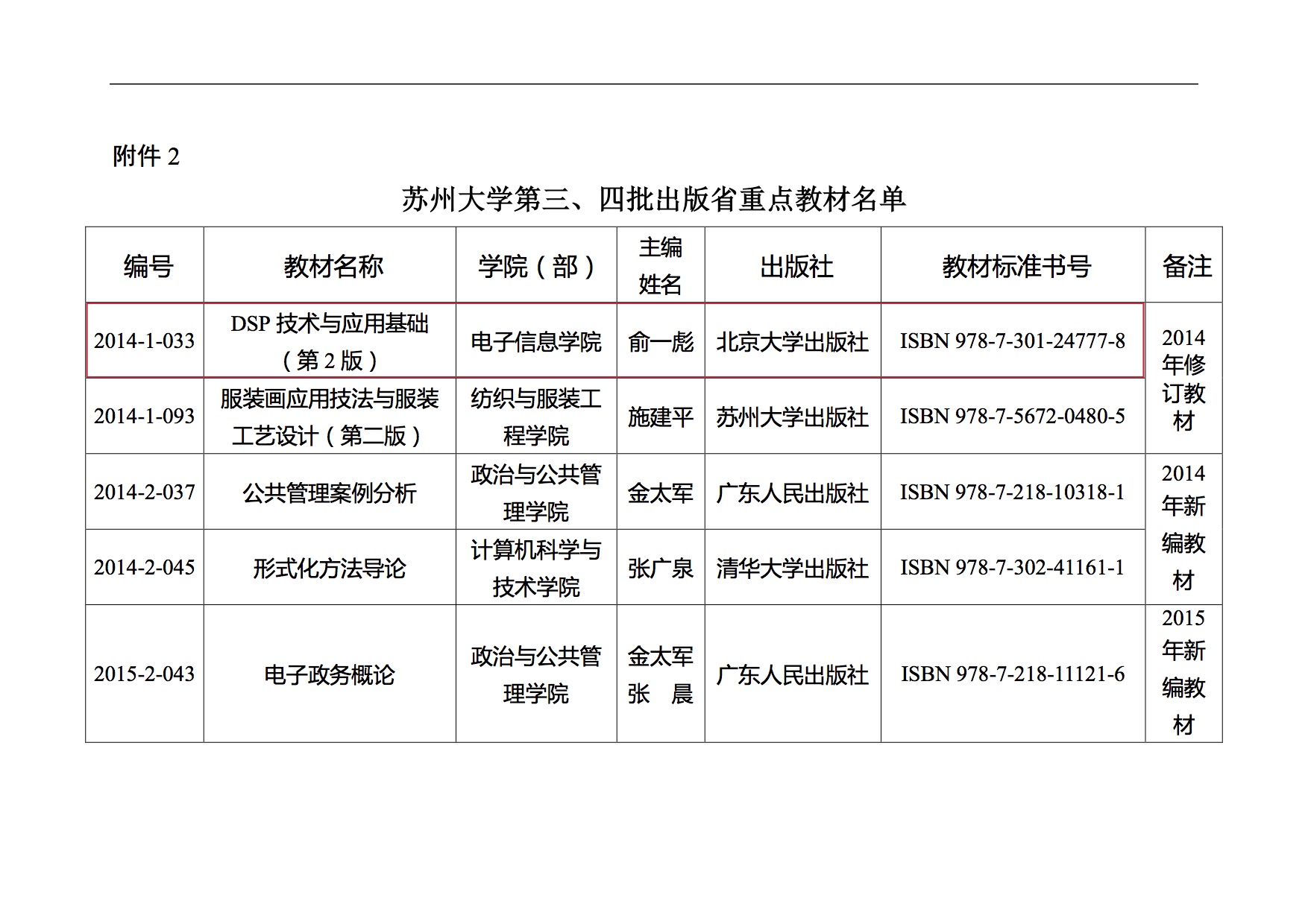 2016年海角app 第三、四批出版省重点教材--《DSP技术与应用基础》(第2版)