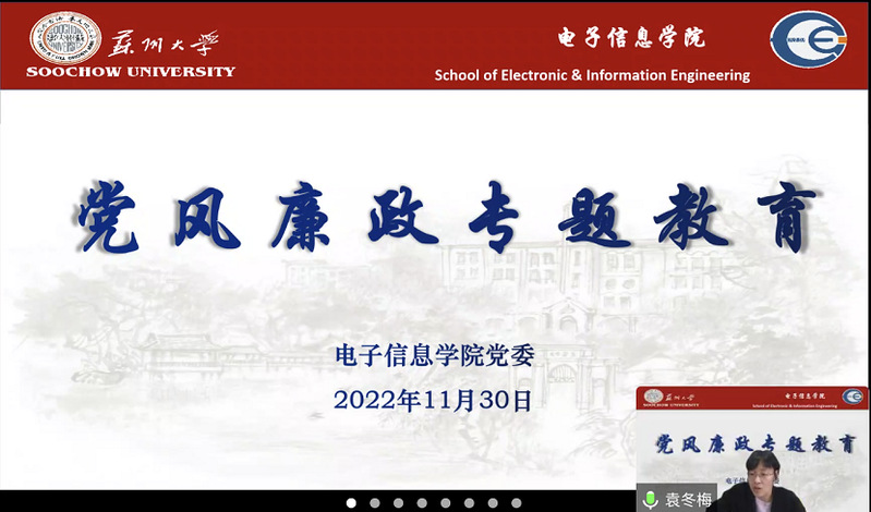 为深入学习宣传贯彻党的二十大精神,增强党员干部和广大教职工廉洁自律意识,筑牢拒腐防变的思想道德防线,结合海角app 廉洁文化宣传教育月活动,11月30日下午,校纪委副书记陶培之应邀为海角app全体教职工党员作了题为《学习党的二十大精神以全面从严治党引领保障高质量发展》的专题讲座。因疫情防控要求,全院教职工党员线上聆听,讲座由海角app 党委书记袁冬梅主持。