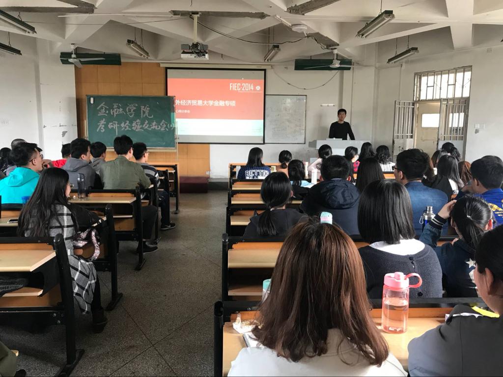 顾庆哲学长讲述了他复习的过程,重点强调了复习中好的学习方法以及遗憾不足,还为同学们列举了考研过程中常见的生活问题以及如何以积极良好的心态来应对解决。任圣婷学姐分享了她自己良好的学习方法和技巧,并推荐了考研相关书籍,为同学们选书提供了重要的参考。王思琪和杨浩然学姐均考取了对外经贸大学的学硕,在考研技巧以及学硕区别于专硕方面做了讲解。