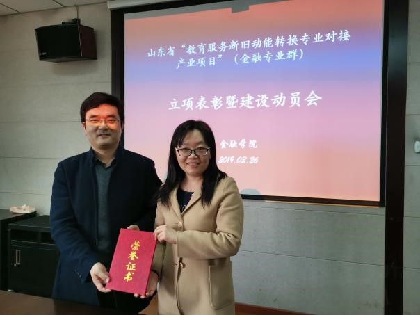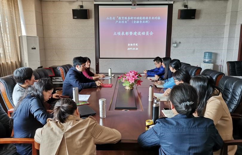 (通讯员:李霞)3月26日下午,海角app 在第三会议室召开了山东省“教育服务新旧动能转换专业对接产业项目”(金融专业群)立项表彰暨建设动员会。会议由冯玉梅副院长主持,彭红枫院长、各系主任和副主任参加会议。