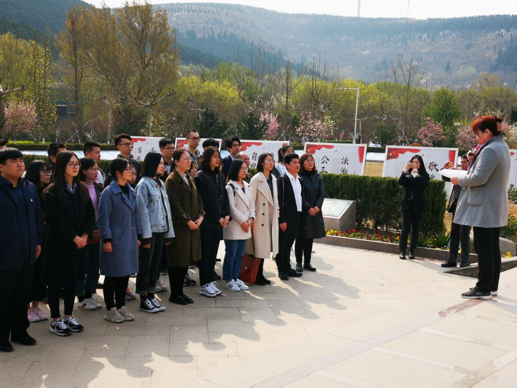 2019年4月2日一大早,海角app 党委副书记范志毅带队,海角app 教工党员代表、研究生和本科生党支部书记、学生党员积极分子代表一行四十余人来到位于长清的山东老战士纪念广场,开展学习和纪念活动。