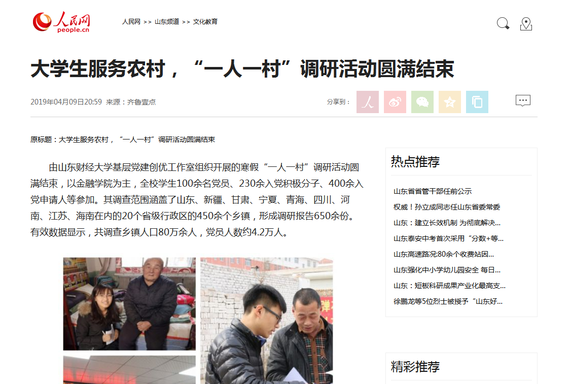 【人民网】【齐鲁壹点】大学生服务农村,“一人一村”调研活动圆满结束