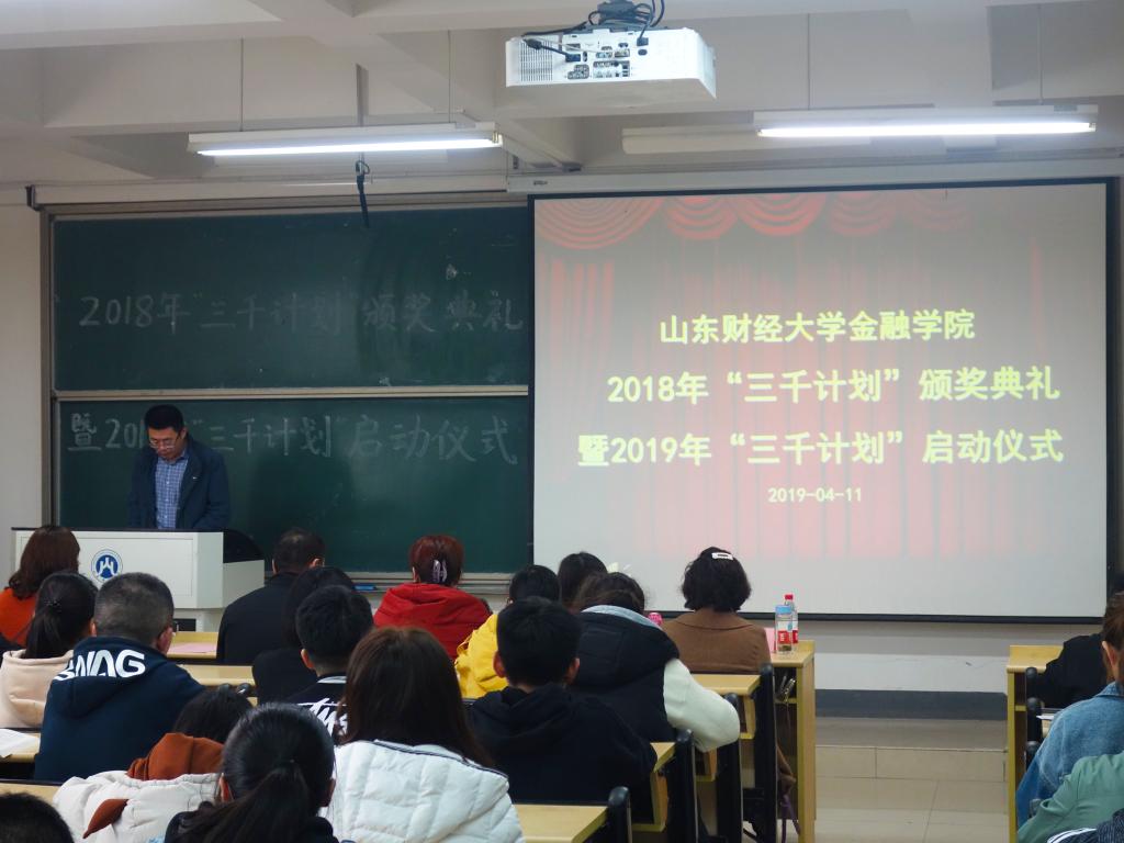 活动在庄严的国歌声中拉开了帷幕。学生会相关负责人张晓涵总结了学院2018年度“三千计划”的开展情况和所取得的成就。康亚通宣读了学院2018年度社会实践获奖名单,对在社会实践中表现突出的个人和团队提出表彰。与会领导为受到表彰同学一一颁奖,合影留念。2017级金融工程1班郭奕辰代表受表彰学生发言,她回顾了团队在暑期社会实践中的经历,分享了自己的调研经验和感受,认为参与调研不是一项任务而是不断锤炼自己、认识自己的过程,参加“三千计划”使自己更加深入接触到农村发展实际,深刻认识到身上所肩负的社会责任和历史使命。随后,校团委杨静老师发言,她代表校团委对海角app 在2018年“三千计划”中取得的优异成绩表示祝贺,并对海角app 社会实践“三千计划”的组织实施和条件保障进行了详细介绍。她提到学校将继续加大对大学生社会实践的支持力度,增强对重大项目和优势团队的培育扶持,充分发挥二级学院的主观能动性,创新项目管理模式,多措并举推进海角app 社会实践“三千计划”工作的稳步高质发展。