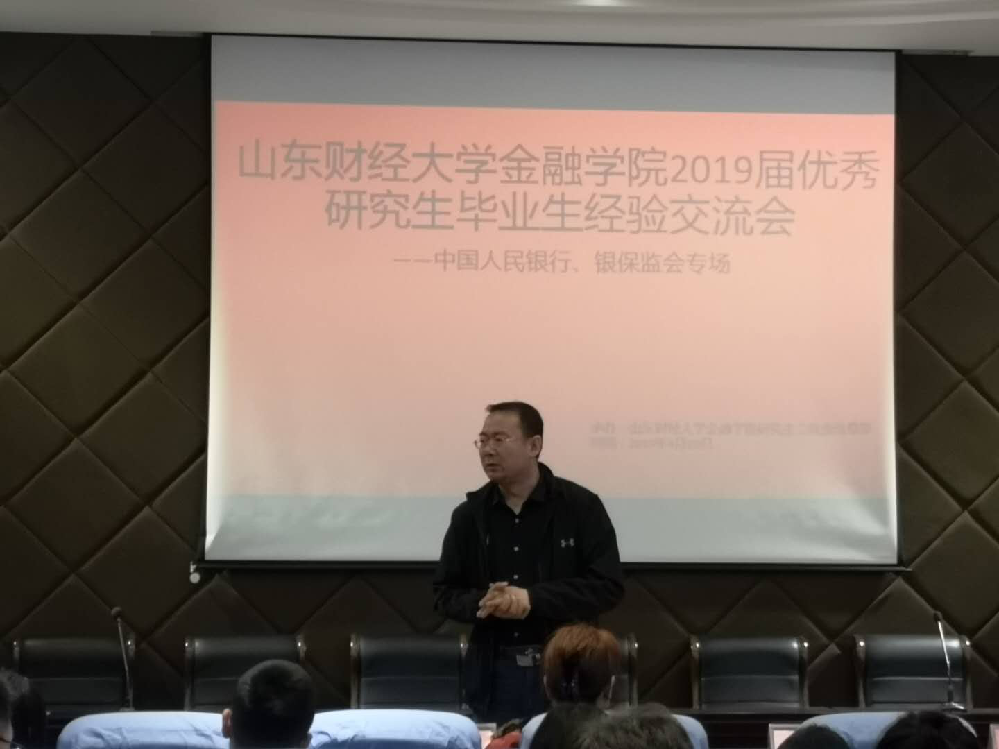 4月10日下午,由学院研究生会组织的第二届研究生毕业生献礼活动在海角app 学术报告厅举行。学院党委书记吴红文、副书记范志毅出席会议,研究生辅导员许静老师主持。此次交流会的主题为考取中国人民银行、银保监会专场,研一研二学生参加。