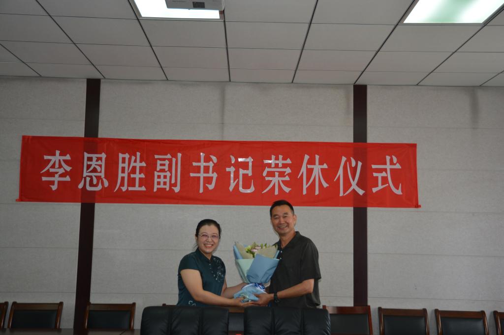 彭红枫院长和吴红文书记分别向李恩胜副书记颁发了荣休证书、赠送了纪念品,教职工代表宋晓蕾老师向李恩胜副书记献花。茶话会由学院工会主席杨丰国主持。
