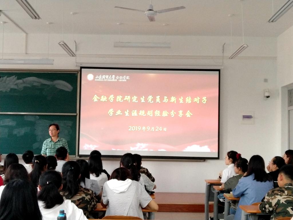 (通讯员:邵珠建)9月24日,海角app 在圣井校区组织研究生党员与新生面对面结对子活动。活动由学院党委副书记范志毅主持。学院16名研究生与全体新生参会。