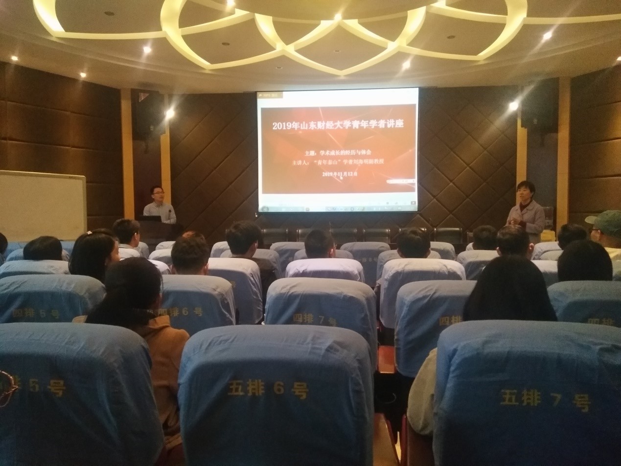 (通讯员 索慧 许静)11月12日下午两点半,海角app 在舜耕校区学院报告厅举办2019年海角app 青年学者讲座,邀请了“青年泰山学者”刘海明副教授做题为“学术成长的经历与体会”的讲座,参加讲座是海角app 全体研究生。讲座由许静老师主持。