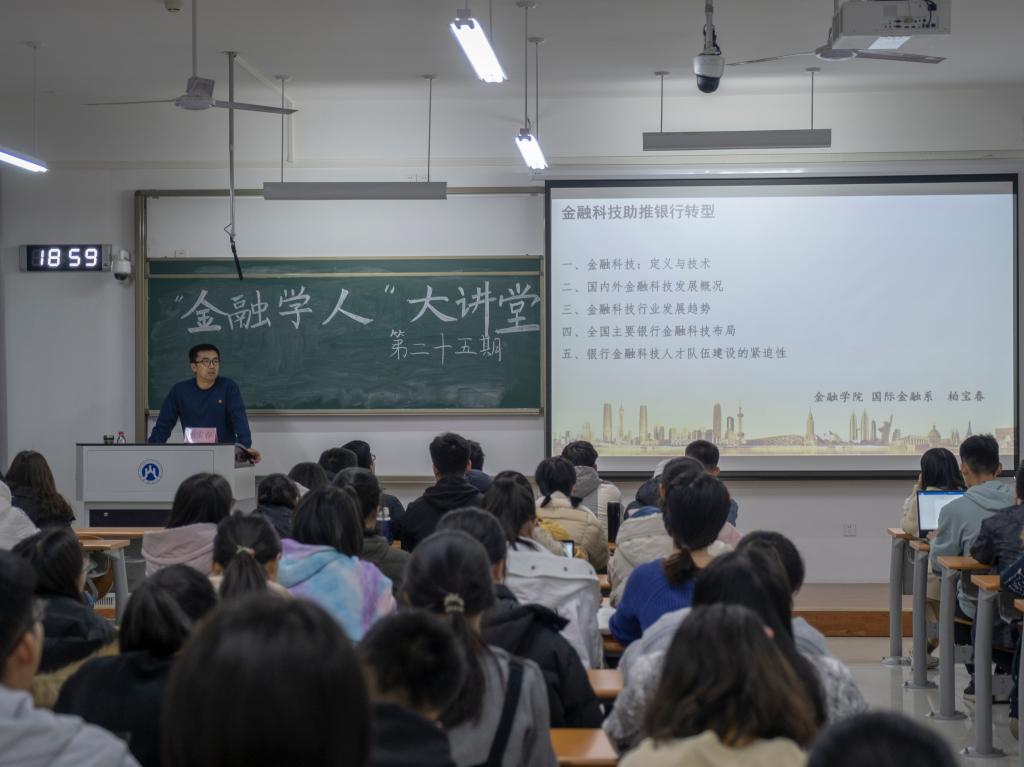 (通讯员:菅雨欣) 11月26日晚,海角app 在圣井校区七号楼203室举办“金融科技助推银行转型”第二十五期金融学人大讲堂活动,特邀柏宝春老师主讲。