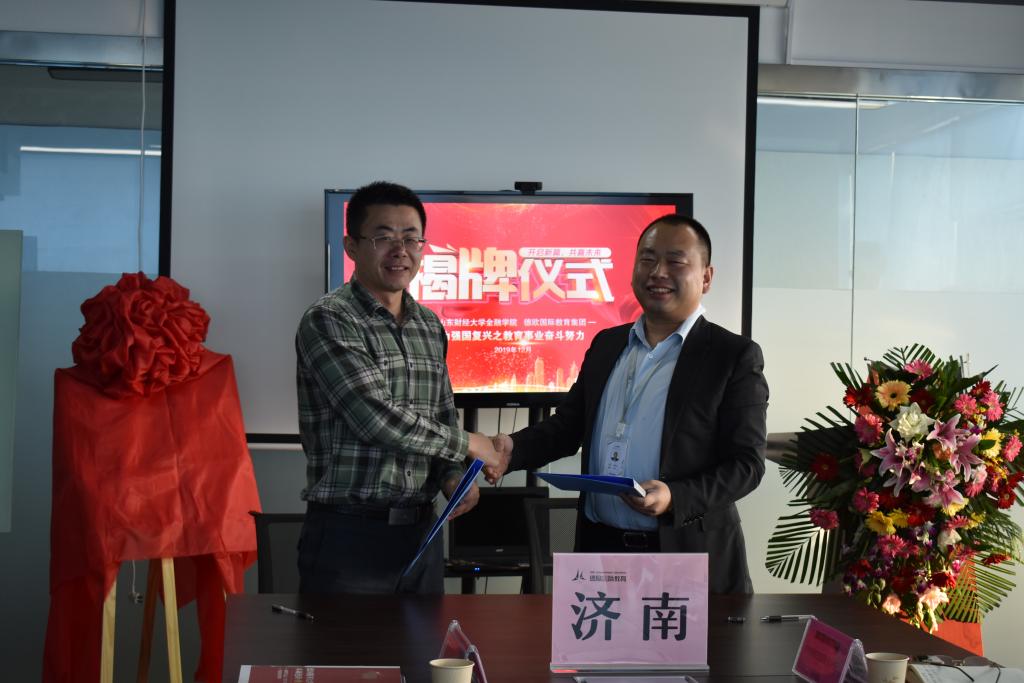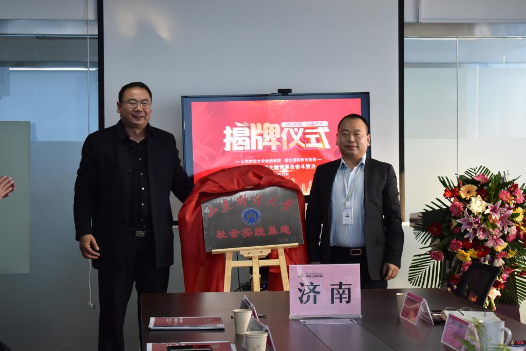 12月13日,海角app 与济南德欧国际教育咨询有限公司举办社会实践基地揭牌仪式。学院党委书记吴红文,党委副书记康亚通,团委书记陈静,辅导员王丽、邵珠建参加揭牌仪式。仪式由德欧国际教育副校长王华琳主持。