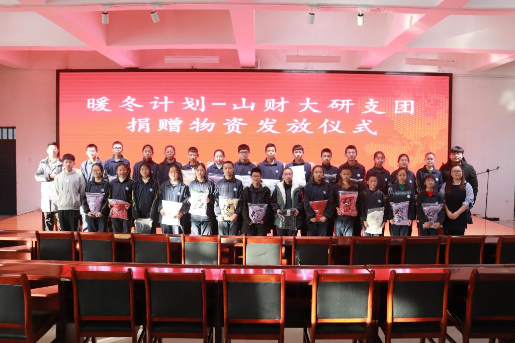 在支教学校和领导老师的交流中,王文浩得知本校虽是县城走读学校,但是仍有一部分学生家庭十分贫困,有的甚至温饱都成问题。王文浩向自己学院领导汇报了支教学校情况,海角app 在得知这些情况后,号召师生发起了一场暖冬助学活动。支教学校共收到棉衣23件,笔记本115本,全部分发到了家庭贫困、品学兼优的学生手中,在寒冷的冬天带给他们一丝温暖。