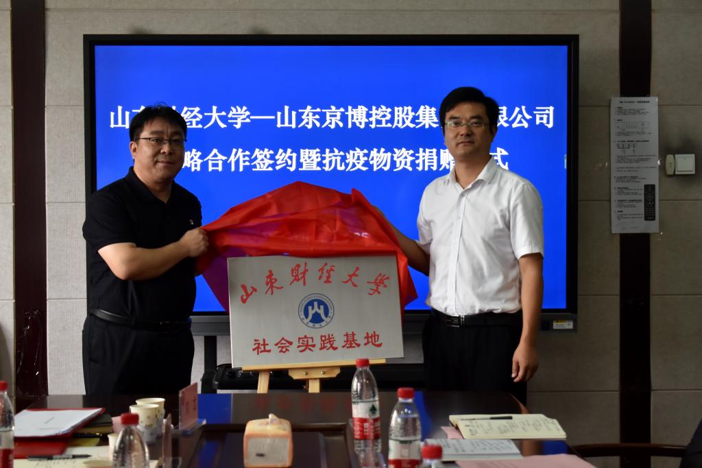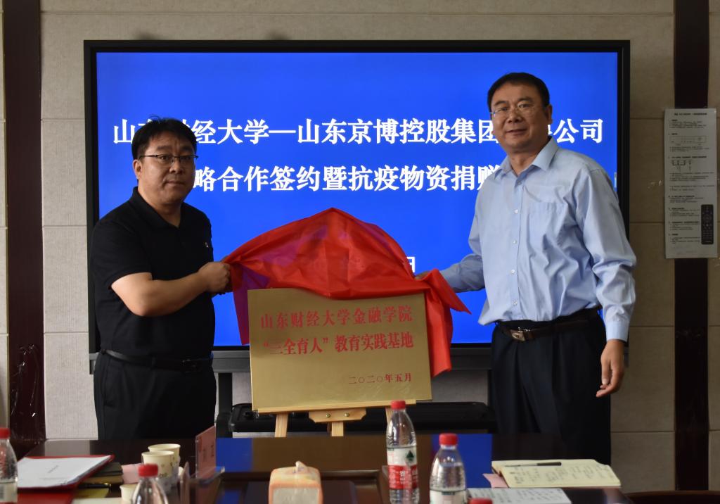 随后,学院党委副书记范志毅与山东京博控股有限公司副总裁、财务总监张静签订战略合作框架协议书。院长彭红枫为京博控股集团颁发抗疫物资捐赠证书,并与褚北祥副总裁共同为海角app 社会实践基地揭牌。学院党委书记吴红文与褚北祥副总裁共同为“三全育人”教育实践基地揭牌。吴书记向褚北祥、张静、李劲松、刘龙颁发创业就业导师证书。