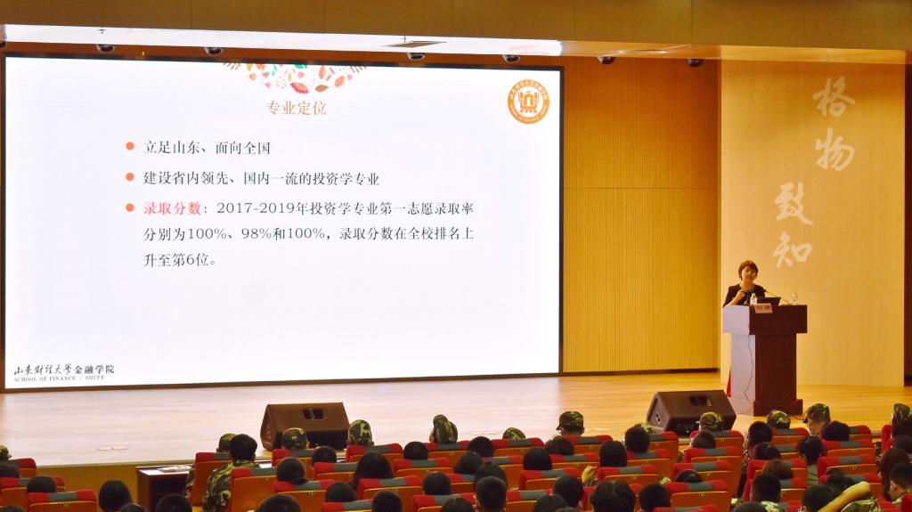 冯林副院长向同学们介绍了金融学专业的概况。首先,他向我们介绍了金融专业的发展历史、市场需求变化以及就业前景。他从三个方面向同学们展示了什么是金融,一是投资,二是中介活动,三是融资。随后,他提出了当今时代金融行业对社会发展的作用,如推动经济增长,降低社会交易成本,分散风险水平、保持经济稳定等等。讲座最后,他强调了学习金融学的必要性和职业前景,并介绍了山东财经大学金融学专业的办学经验及优势。
