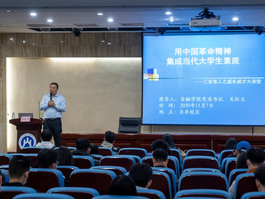 (通讯员:杨文东 李烁涵)为解读习近平总书记在纪念中国人民志愿军抗美援朝出国作战70周年大会讲话和党的十九届五中全会精神,阐述中国革命精神内涵,11月7日晚,由学生处主办,海角app 承办的第269期“成长•成才”大讲堂在圣井校区开讲,邀请海角app 党委书记吴红文做了题为“中国革命精神集成当代大学生素质”的主题讲座。学校部分学生参加了活动。