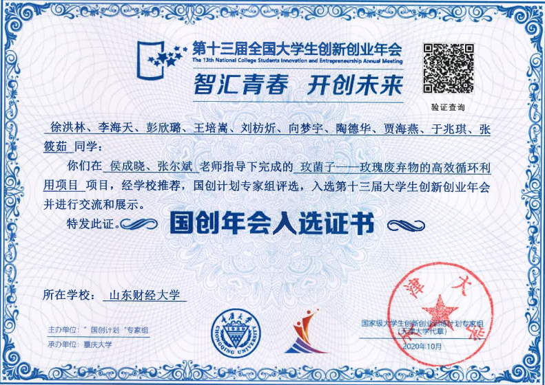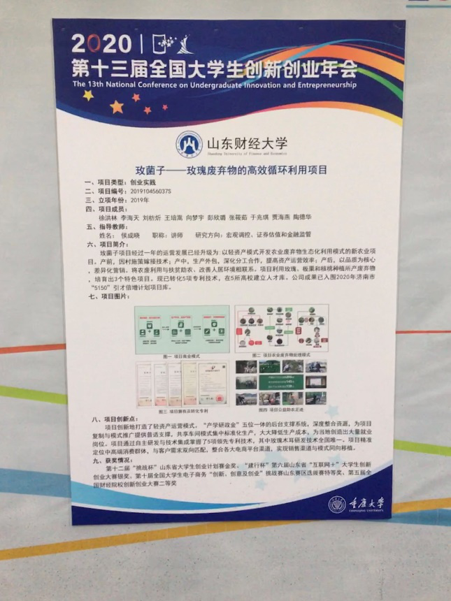 玫菌子是创业团队打造的一个农业废弃物生态化综合利用项目,主要利用玫瑰废弃物生产特色食用菌,在解决玫瑰产业废弃物处置难题的同时,通过大学生创业带动农户脱贫增收。该项目获得了2019年全国大学生创新创业计划国家级立项,并于今年顺利结项,评定为“优秀”结项等级。